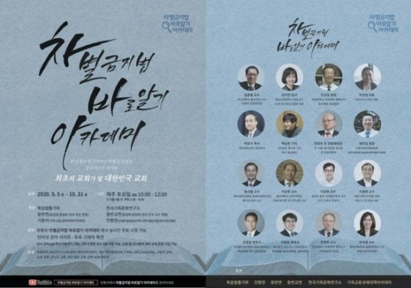 | [언론보도] 차별금지법 바로 알기 아카데미, 9월 5일부터 매주 토요일 유튜브로(한국기독문화연구소) | |||||